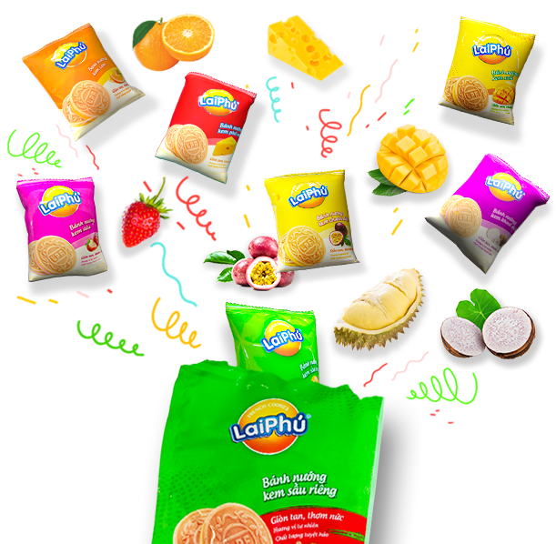 Lai Phu offers you many delicious choices with products such as cakes, candies, jelly, pudding, chocolate, and soft drinks.