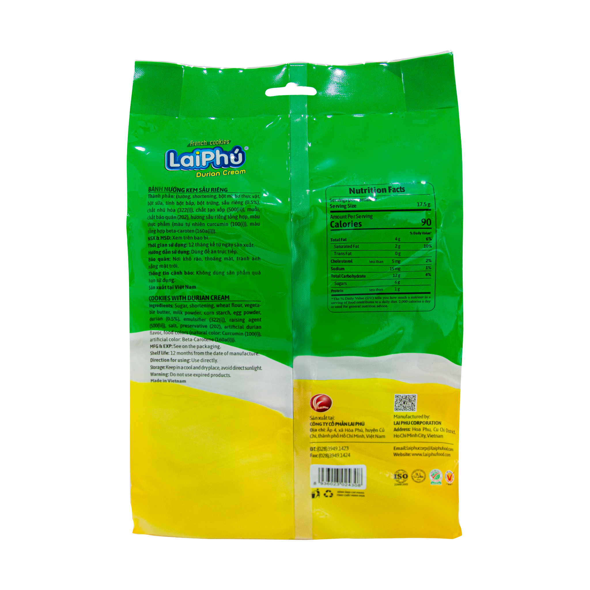 210G Lai Phu Durian Cookies (#1 Bestseller) is a combination of crispy crust made from premium wheat and fat creamy orange cream filling, giving you a new and exciting feeling when enjoying.